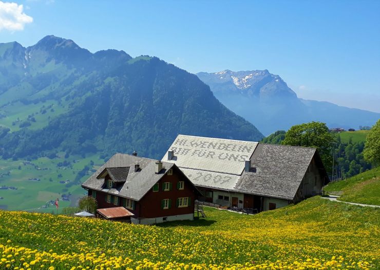 Niederrickenbach liegt an einem Berghang auf 1'200 m.ü.M., unter den Felsen der Musenalp.